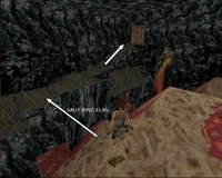 Se laisser descendre sur le côté droit. Sauter par dessus le bassin sur une plate-forme. Sauter sur les blocs à droite. Prendre une grande trousse au passage. Entrer par l'ouverture. Actionner le levier et prendre deux recharges uzi.