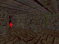 Entrer en évitant les boulets. Descendre dans le trou pour fermer les grilles. Suivre le couloir. Dans la salle suivante, tuer 2 statues de Shiva. Leur prendre 2 cimeterres. Ramasser une recharge fusil en haut des marches et une petite trousse dans le bassin. Mettre les deux cimeterres à la statue en haut : les grilles s'ouvrent.