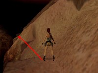 Faire un saut avec élan vers la plate-forme à droite et s'éloigner rapidement du bord, tuer un scarabée et un scorpion géant et ramasser une petite trousse. Avancer ensuite entre les deux pyramides, et pousser le seul bloc amovible au fond du passage : une porte s'ouvre sur le flanc de la pyramide. Entrer et ouvrir la trappe, puis y descendre.