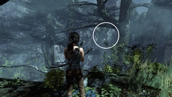 Redescendre et remonter le cours d'eau de quelques pas. Chercher un renfoncement dans la paroi, derrière un tronc d'arbre abattu en hauteur. À droite sous le tronc d'arbre, viser 1 totem (5/10) (EXP +10) suspendu. C'est maintenant le bon moment pour chasser. Lara peut chasser jusqu'à 3 cerfs (EXP +225) avant que la zone cesser de rapporter de l'expérience. Pour trouver les cerfs, il faut être silencieux et viser juste. Un tir en pleine tête est une bonne façon d'éviter de devoir courir.