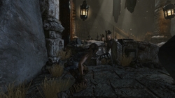 La première partie du niveau tourne surtout autour de l'infiltration ett de l'exploration. Ainsi, Lara peut observer les Oni depuis sa cachette et progresser sans être repérée. Un court combat démontre qu'une stratégie particulière est nécessaire pour vaincre les nouveaux ennemis, et que les armes potentiellement récoltées et améliorées jusqu'ici ne sont pas de trop.