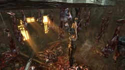 Lara se réveille en plein cauchemar, suspendue par les bras dans ce qui ressemble à un abattoir pour êtres humains. La première partie du niveau consiste à s'échapper avant l'arrivée des créatures. Il vaut mieux avoir le cur bien accroché, vous voilà prévenus !