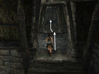 Sauter vers le poteau pour que Lara s'y perche et sauter vers le rebord. Suivre le couloir, descendre dans le trou via les aspérités du mur et le traverser. Grimper sur le bloc près du poteau, puis s'agripper à la corniche, progresser vers la droite, faire un saut arrière vers la barre horizontale puis attraper la corniche.
