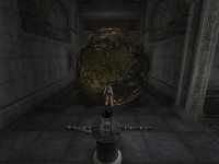 Revenir au relief principal et tirer sur les points correspondants : la grille s'ouvre. Aller jusqu'au globe et utiliser le grappin pour le débarrasser de ses deux attaches et le faire tomber. Le pousser ensuite vers l'étage inférieur. Descendre et pousser le globe sur la dalle circulaire centrale : la porte s'ouvre à l'étage.